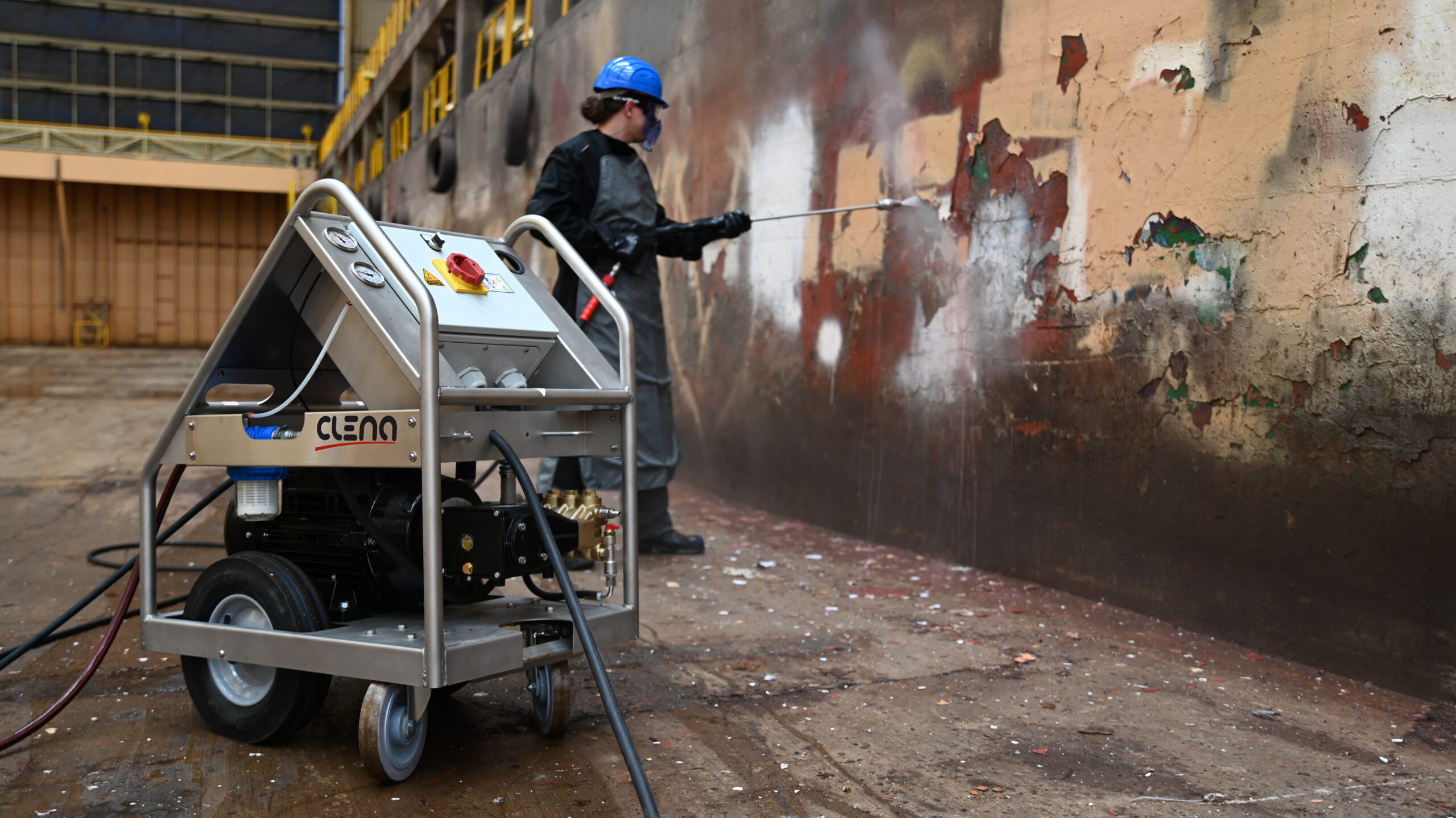 Farbabtrag unter Hochdruck: der leistungsstarke Hochdruckreiniger CLENA Serie H9000 macht es möglich.