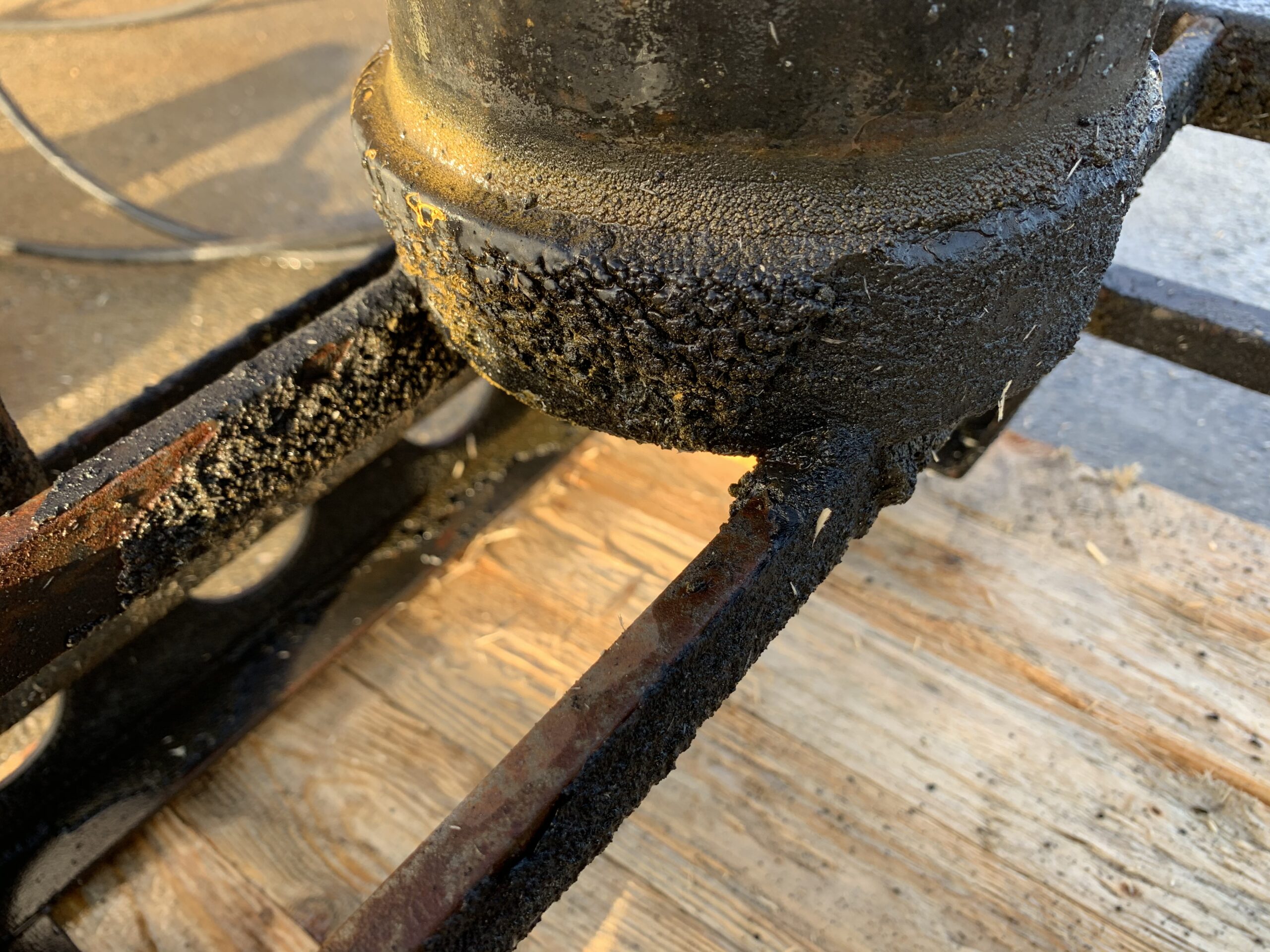 Bei  solch einer hartnäckigen Verschmutzung hilft nur schweres Gerät. Die CLENA Serie H5031 mit 30 L/min Schwemmleistung bei 500 bar Wasserdruck